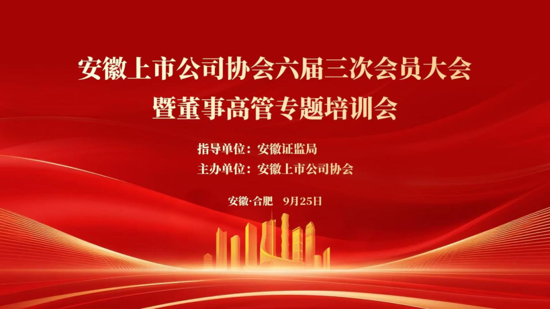 9月25日,安徽上市公司协会六届三次会员大会暨董事高管专题培训会在合肥举行。会议由省政协常委、经济委副主任,安徽上市公司协会会长项小龙主持,辖区186家上市公司董事长、总经理及其他高管,2家会员机构负责人共计350余人现场参会,其余董事高管通过线上直播参会。